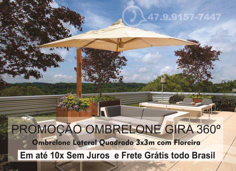 Compre Direto do Fabricante! Ombrelones em Madeira, Lateral com Floreira, Gira 360º. Tamanhos no Redondo ou Quadrado e até Gigantes de 4,0 x 4,0m. Fabricados Artesanalmente. Ombrelone de altíssima qualidade, com estrutura em MADEIRA ECOLÓGICA. Tecido Grosso e Lavável com proteção contra raios solares. FRETE...